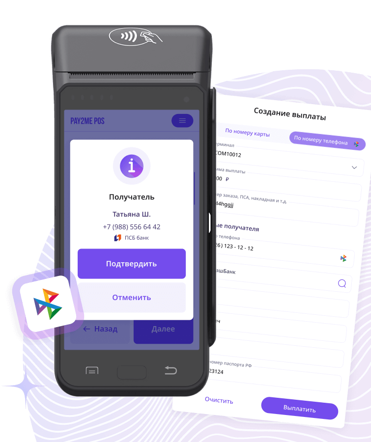 Выплаты по номеру картыВыплаты на карту физ лицу (по номеру карты) ввод вручную или NFC ридер -
