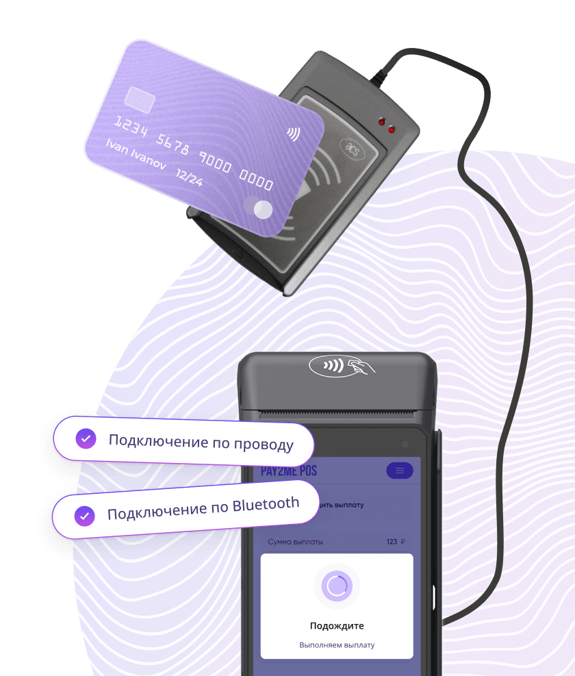 Выносной считыватель картПроизводите выплату не вставая из-за стола.