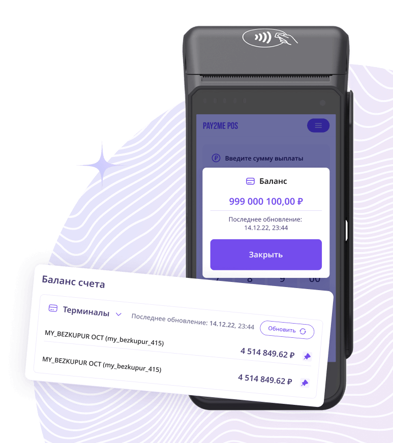 Баланс расчётного счетаВсегда под рукой актуальный баланс расчётного счета — можно отслеживать в личном кабинете и на POS-терминале -