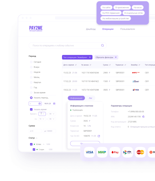 Свяжитесь с нами и начните принимать платежи. Вы также можете связаться с нами, чтобы разработать индивидуальное решение для вашего бизнеса.
